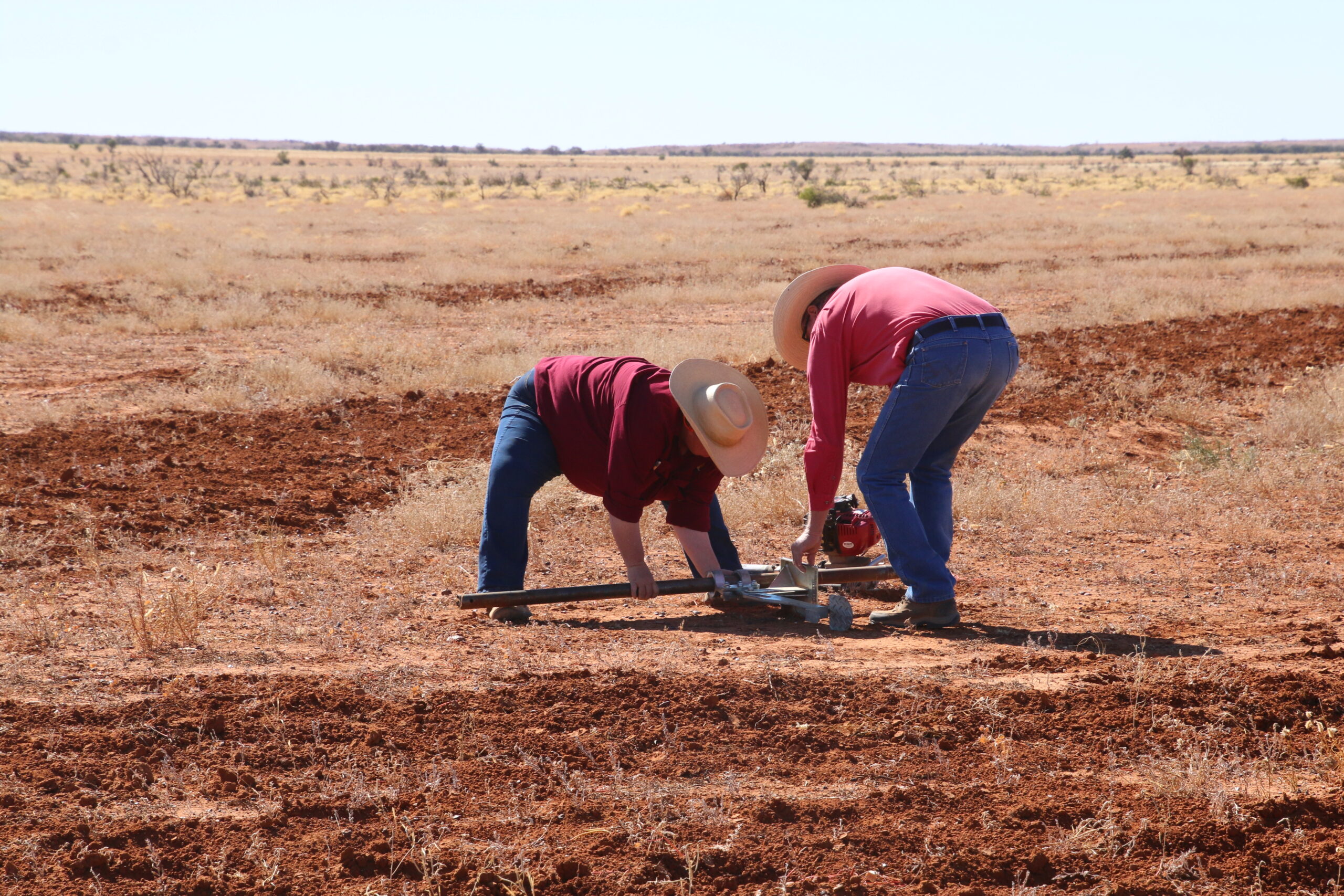 NRM staff will help to collect samples across the state for the National Soil Monitoring Program. This image shows Desert Channels Queensland officers collecting samples near Boulia for an earlier project.